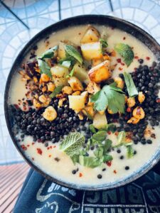 Mittwoch, 27.3.24 – „Soulfood – Bowl“ – Cremige & super herzhafte Süsskartoffel & Black Bean Bowl mit leckerer Kokosmilch und Babypinat; dazu Knusperbrot aus dem Ofen