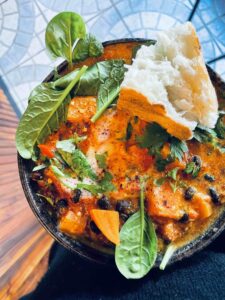 Mittwoch, 28.2.24 – „Coconut Bowl“ Cremig mildes Kokos Korma mit Blumenkohl & grünem Kräuter-Würzöl; dazu feiner Basmatireis mit roasted Cashews, yummy Zitronengrasnote und viel frischer Petersilie