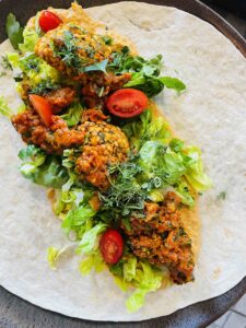 Dienstag, 30.9.25 – „I want!“ Falafel Wraps – homemade roasted garlic Humus, knackig bunter Krautsalat, saftig-knusprige Falafel-Bällchen & leckerste spicy Chimichurri Sauce