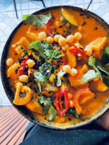 Mittwoch, 6.12.23 – „Soulfood – Bowl“ – Cremige & super herzhafte Süsskartoffel & Black Bean Bowl mit leckerer Kokosmilch und Babypinat; dazu Knusperbrot aus dem Ofen